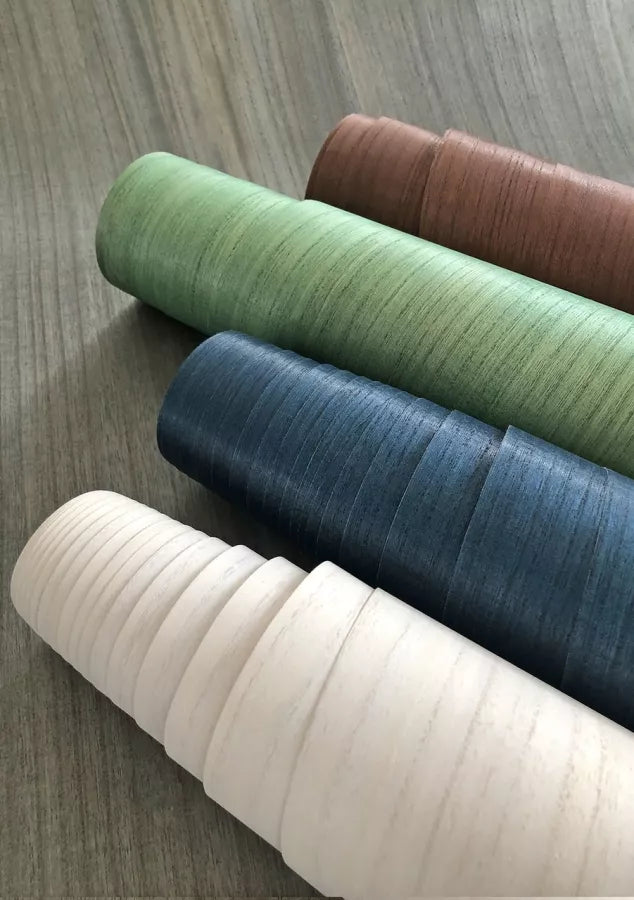Wood Veneer Wallpaper is part of our expanding natural texture range of wallpapers. We can now offer this wood veneer wallpaper made from a 100% wood veneer. This amazing wallpaper is for all your natural tactile wallpaper lovers. Available in 20 stunning colourways these wallpapers are hand dyed and prepared just for you. This product is custom made on demand so can take 3 - 6 weeks for delivery - but nothing this great is easy :)
