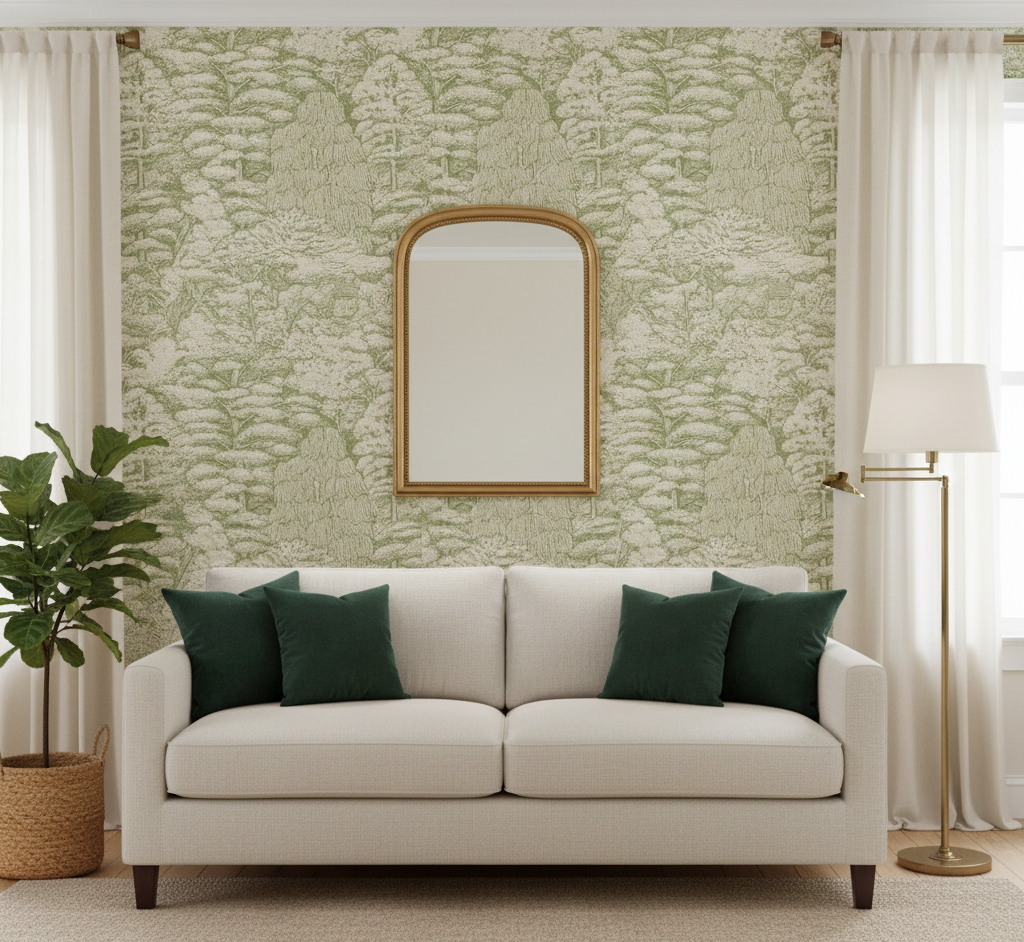 A beautiful modern take on the traditional toile, bringing the quiet atmosphere of a British woodland right to your walls. The design is filled with detailed, familiar British trees, creating a sense of being peacefully surrounded by nature.