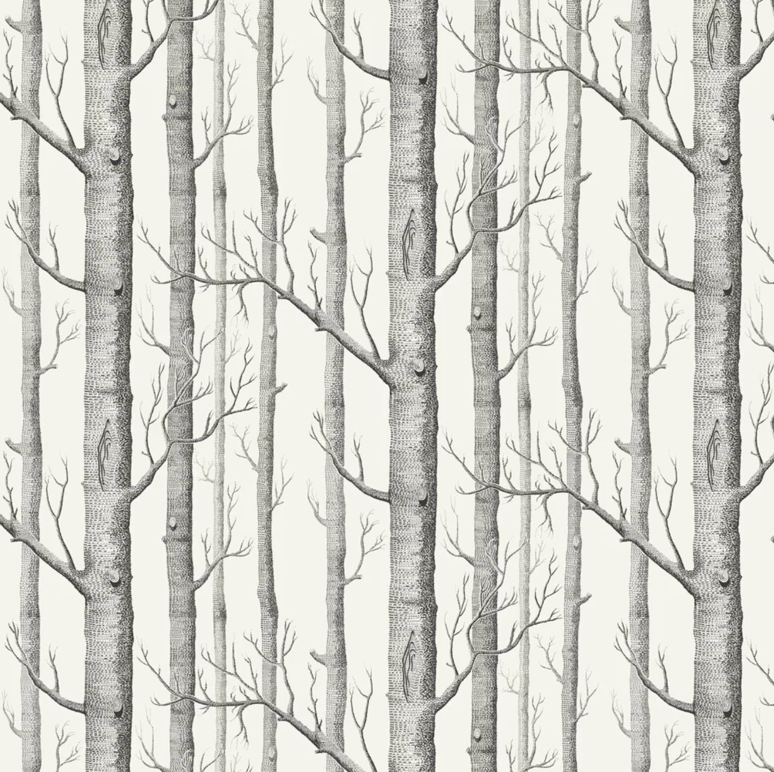 The classic 'Woods' wallpaper and all its variations is now available at The Inside. Michael Clark designed this now iconic wallpaper pattern in 1959. Originally designed as a screen print, the Woods wallpaper pattern features bold sketches of trees, making a unique forest repeat.